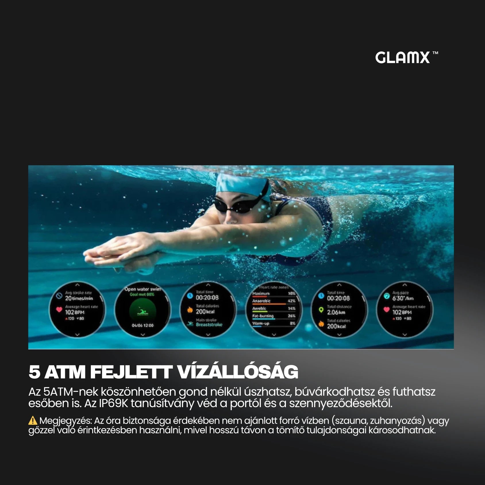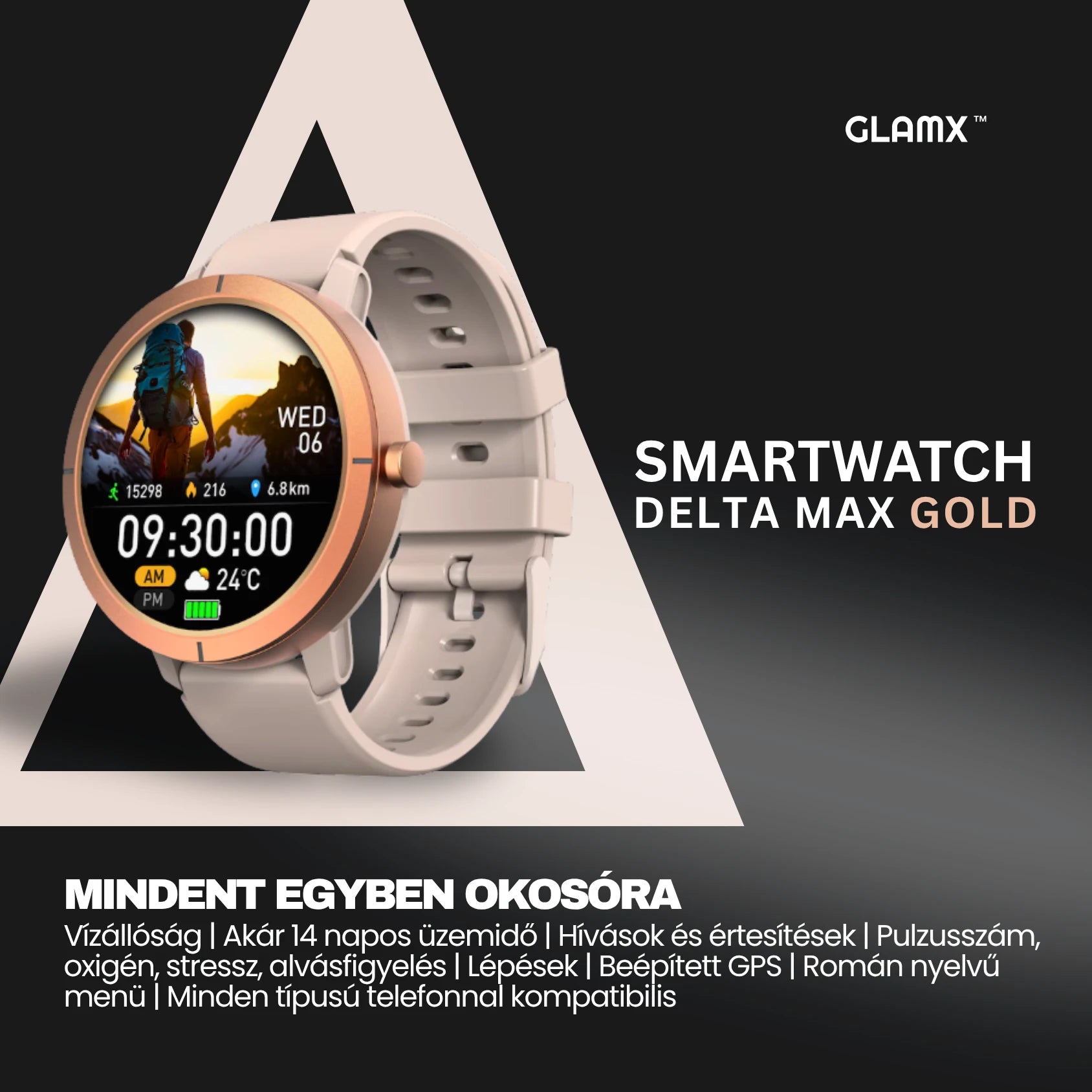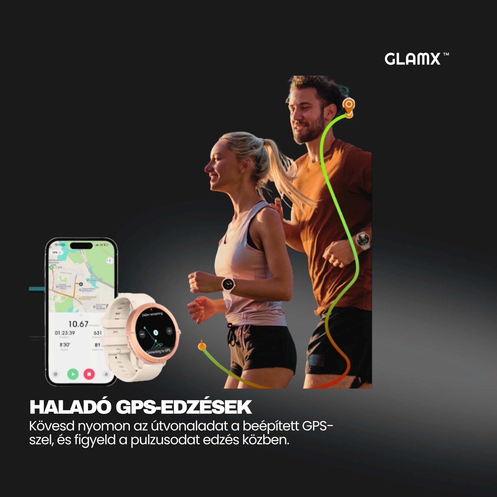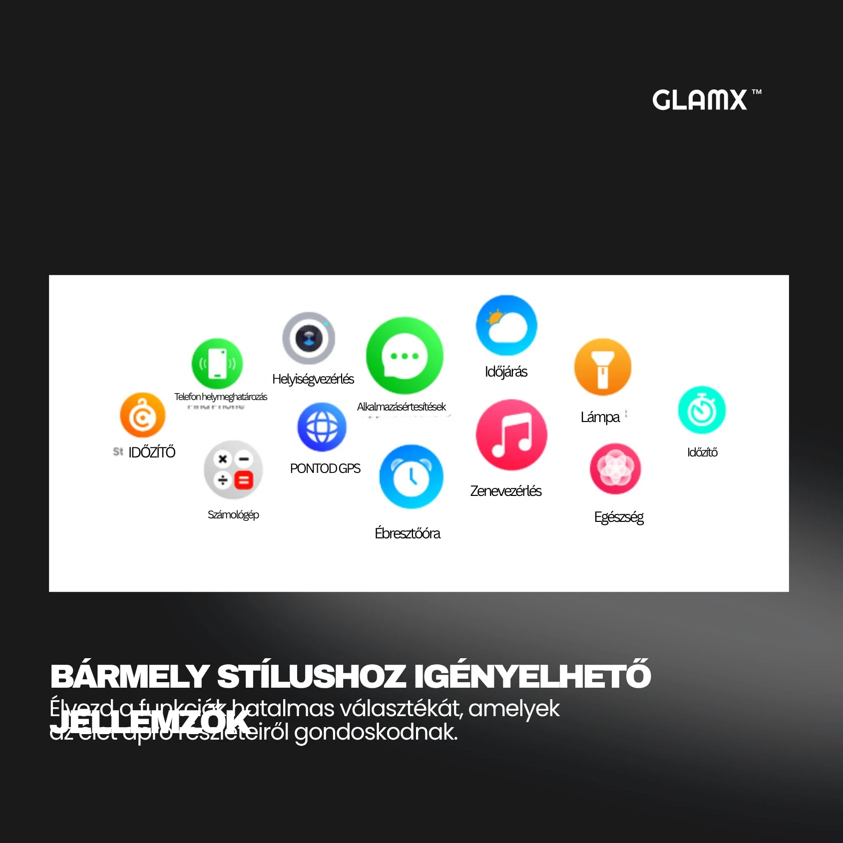 A GLAMX WATCH X segítségével kedvenc zenéid mindig kéznél vannak, és könnyedén válthatsz az óra különböző funkciói között.