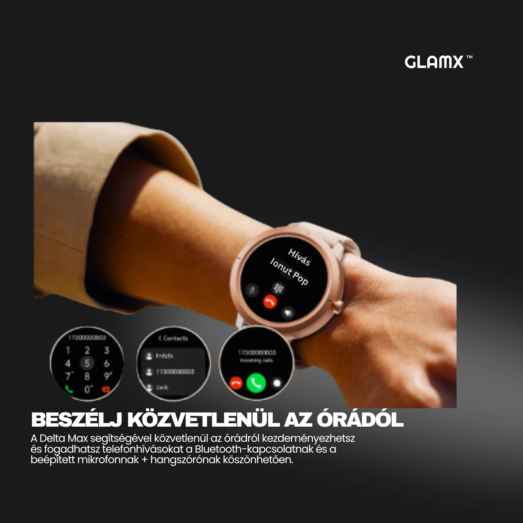 Maradj kapcsolatban bárhol, bármikor a GLAMX WATCH X okosórával! Legyen szó családi vagy munkahelyi hívásokról, egyetlen érintéssel kezdeményezheted vagy fogadhatod őket anélkül, hogy elő kéne venned a telefonod.